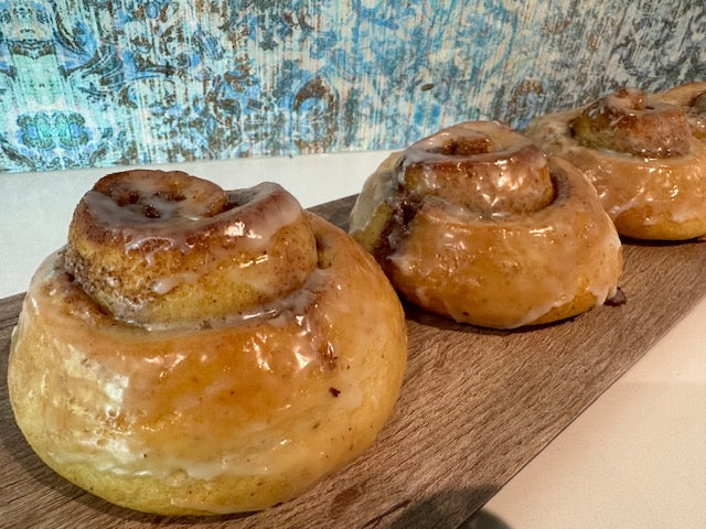Savour the delight of our Gluten-Free Cinnamon Buns, a perfect symphony of taste and texture. Each bun is crafted from premium gluten-free flours, ensuring a soft, fluffy bite, swirled with a rich cinnamon and golden castor sugar filling, for that classic warmth and sweetness. They are then drizzled with delicious fresh lemon icing, making these buns a truly decadent treat. Ideal for breakfast, a midday snack, or a sweet finale to any meal, they’re designed to enchant everyone, especially those with gluten sensitivities.